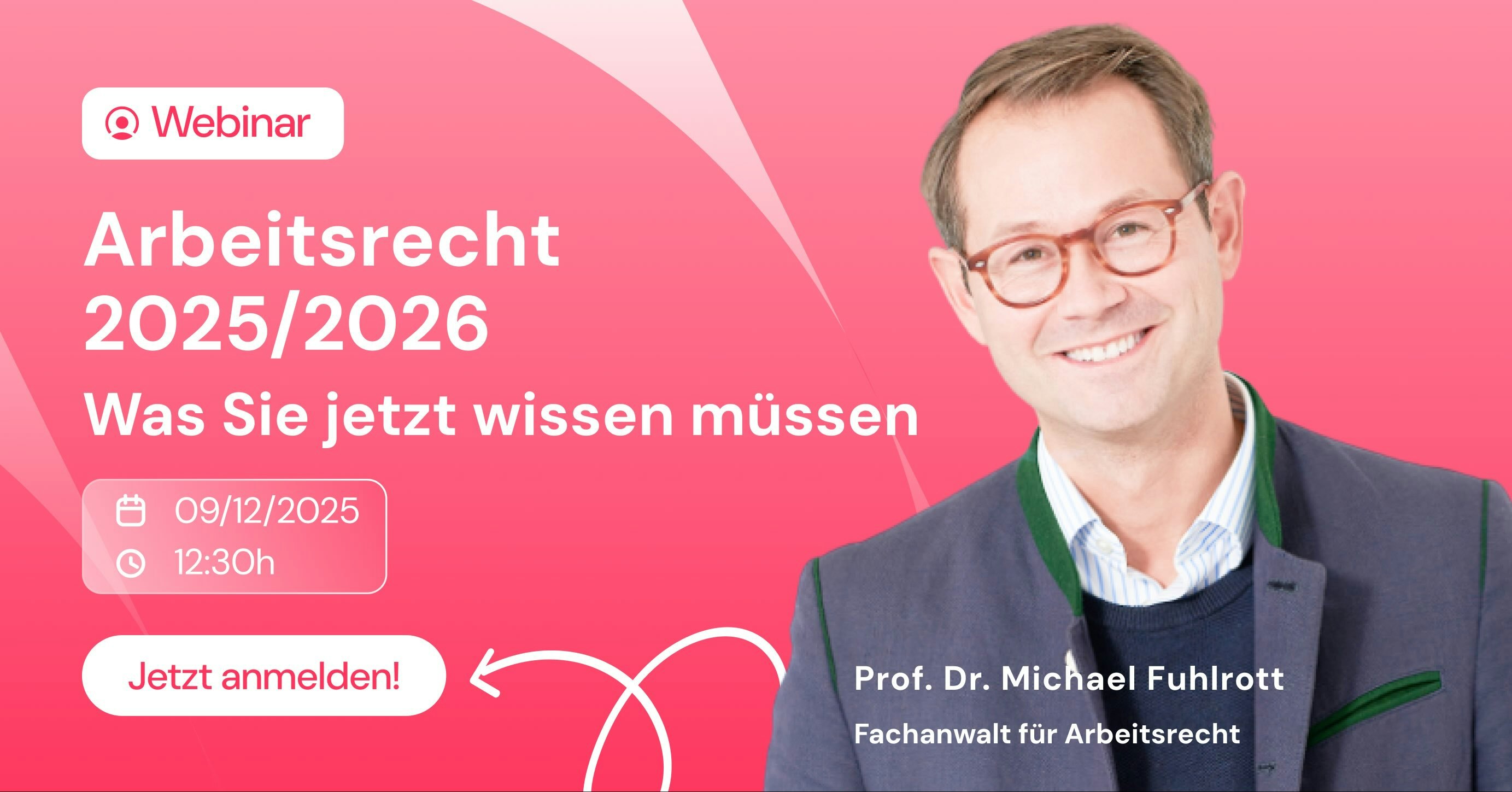 In diesem Webinar erfahren Sie, welche arbeitsrechtlichen Entscheidungen 2025 prägend waren und was Personalverantwortliche 2026 erwartet.