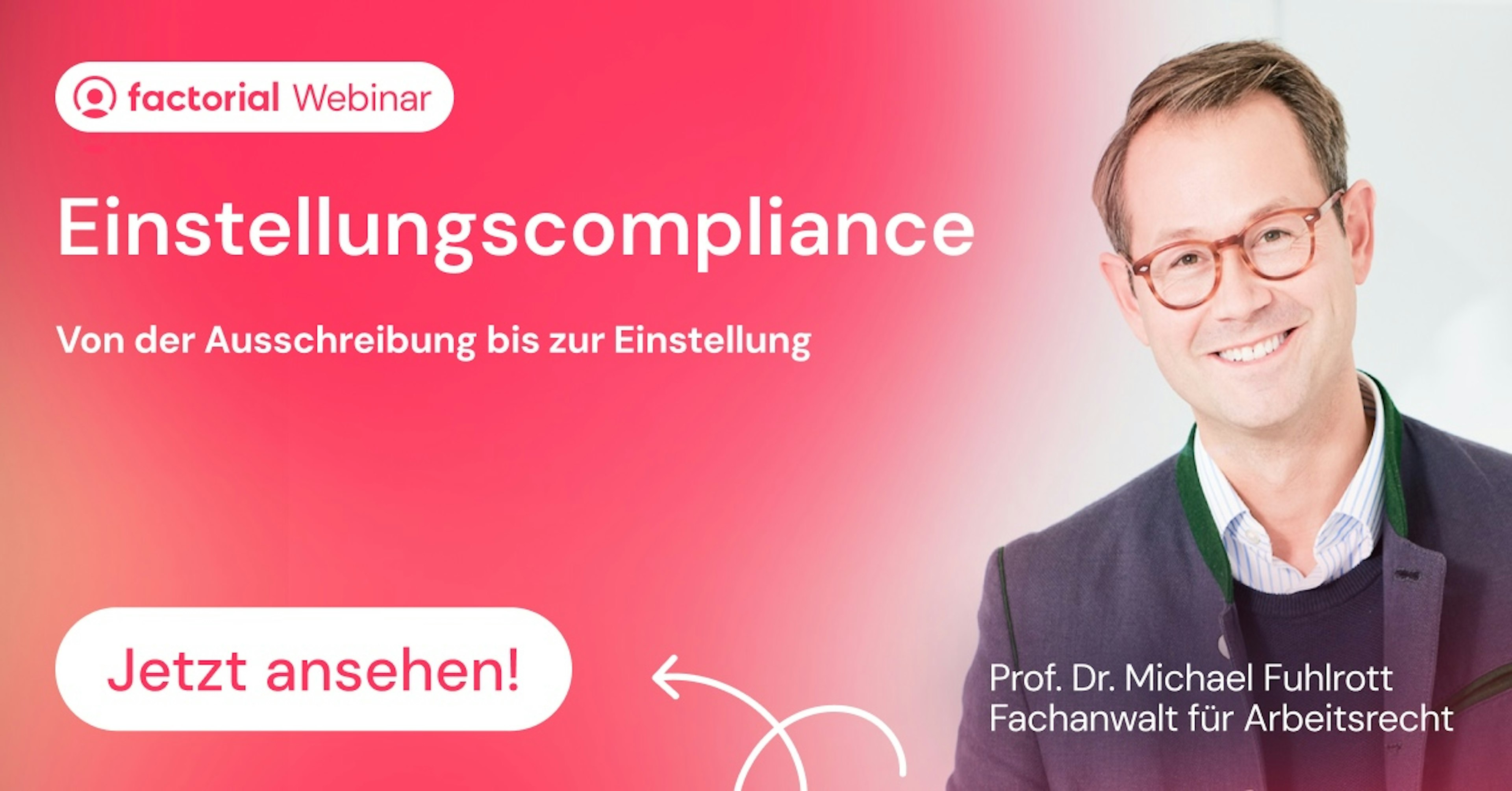 In diesem Webinar „Einstellungscompliance – Von der Ausschreibung bis zur Einstellung“ erhalten Sie einen praxisnahen Überblick über rechtssichere Prozesse im gesamten Bewerbungs- und Einstellungsverfahren.