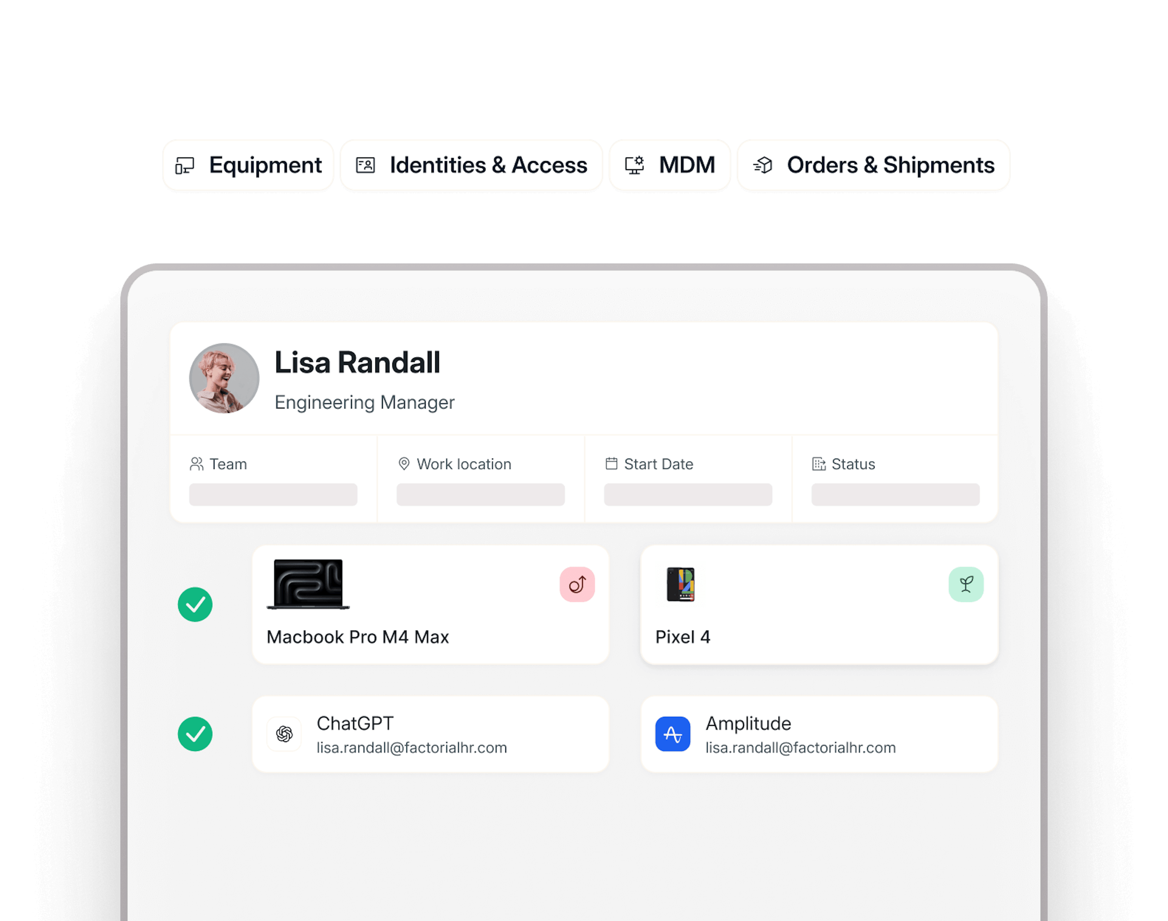 Ja. Factorial IT richtet sich nach SOC-2-Standards und setzt Sicherheitskontrollen wie Verschlüsselungsprüfungen, Remote-Sperrung und -Löschung, Audit-Logs sowie konsistente Richtliniendurchsetzung über Geräte und SaaS-Tools hinweg um.