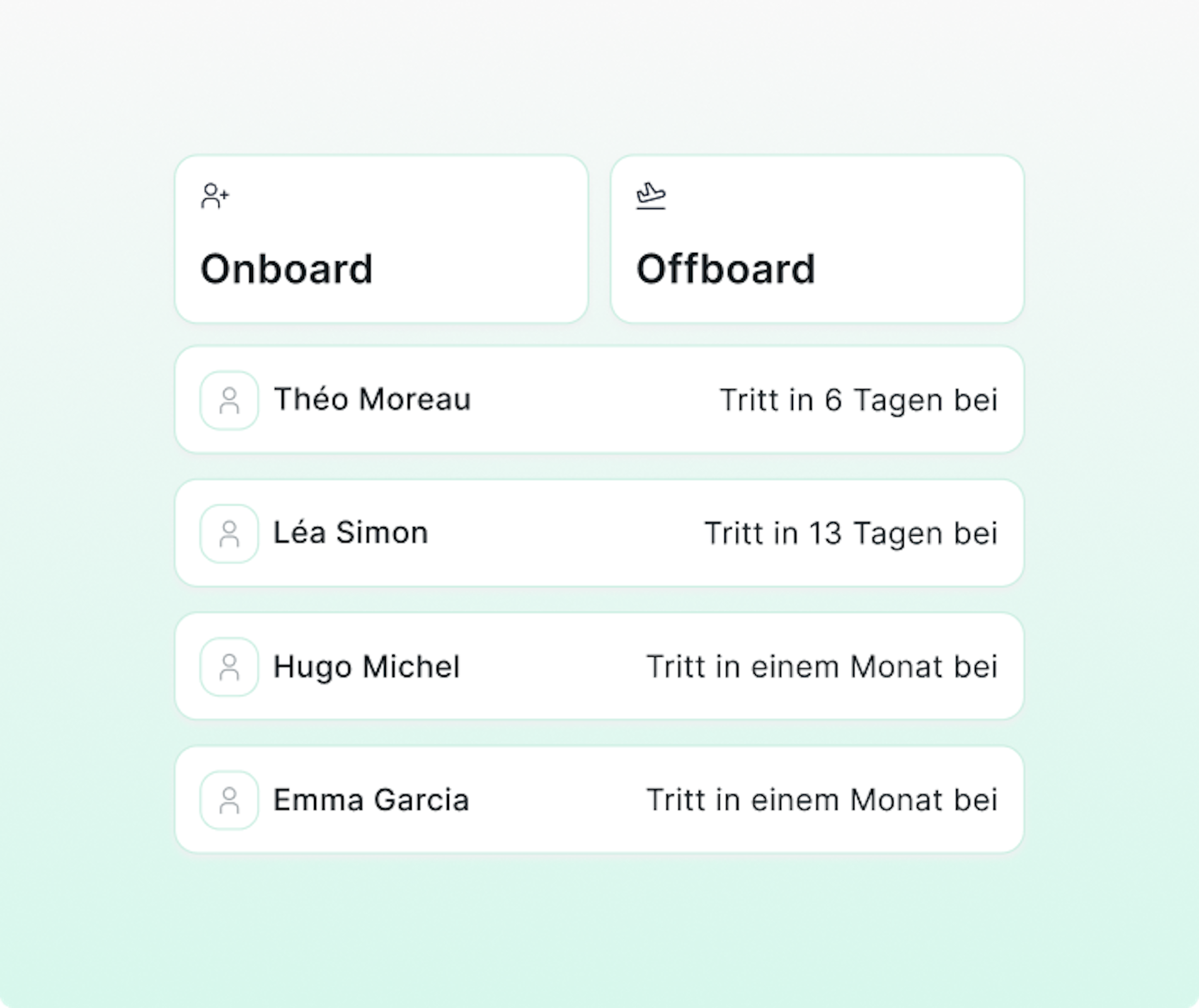 - Onboarding und Offboarding automatisch ablaufen sollen, ohne manuelle Abstimmung