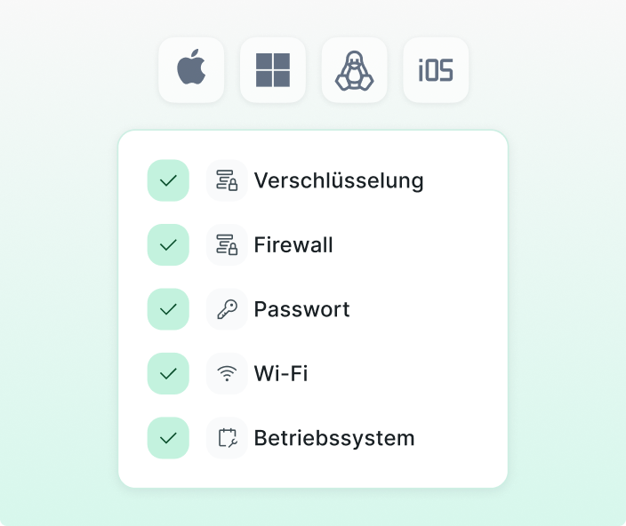 Einheitliches IT-BetriebssystemVerwalten Sie Mac, Windows, Linux und iOS in einem einzigen Dashboard. Setzen Sie Verschlüsselung durch, standardisieren Sie Sicherheitsrichtlinien und sperren oder löschen Sie verlorene Geräte aus der Ferne.