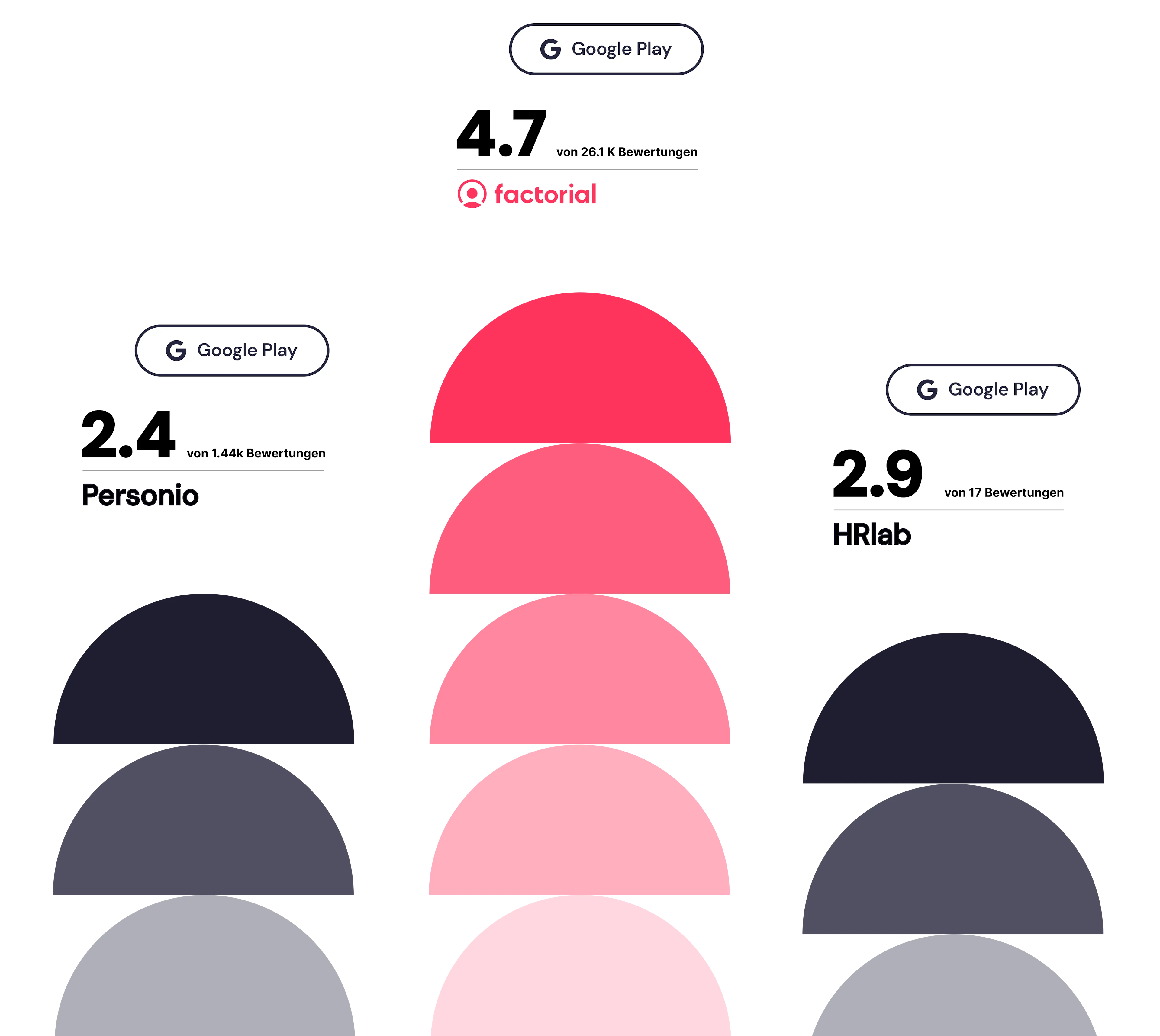 Die auf dieser Seite dargestellten Informationen basieren auf öffentlich zugänglichen Quellen, insbesondere den Webseiten, dem Help Center und den öffentlichen Seiten der jeweiligen Anbieter. Die Vergleiche zwischen Factorial und anderen Anbietern dienen ausschließlich der Veranschaulichung der jeweiligen Softwarefunktionen, Preisgestaltung und Funktionalitäten. Alle Angaben zu Funktionen, Preisen und Integrationen können sich jederzeit ohne vorherige Ankündigung ändern. Factorial übernimmt keine Haftung für die Richtigkeit, Vollständigkeit oder Aktualität der bereitgestellten Informationen. Wir empfehlen, die jeweiligen Anbieter direkt zu kontaktieren, um die genauesten und aktuellsten Informationen zu erhalten. Alle gesetzlichen Vorschriften des spanischen Wettbewerbs- und Werberechts werden von uns vollständig eingehalten; falls Sie Bedenken haben, können Sie uns gerne kontaktieren. Die dargestellten Vergleiche stellen keine abschließende Bewertung oder Empfehlung für einen Anbieter dar, sondern dienen ausschließlich als Informationsquelle.