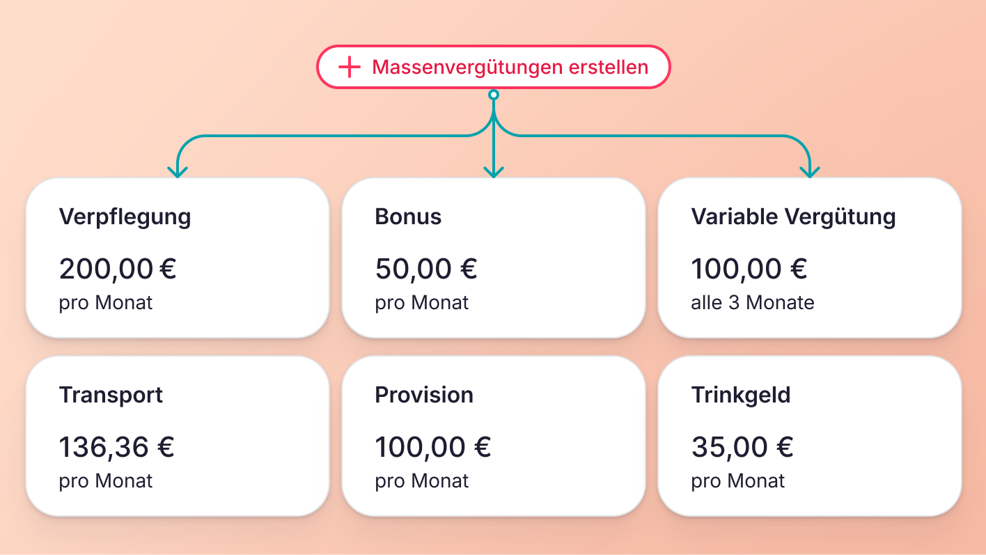 Bislang war es sehr zeitaufwändig, dieselben zusätzlichen Vergütungen (z. B. Essensgutscheine oder Fahrtkostenzuschüsse) für alle Mitarbeiter bereitzustellen, da die Informationen manuell für jede einzelne Person eingegeben werden mussten.