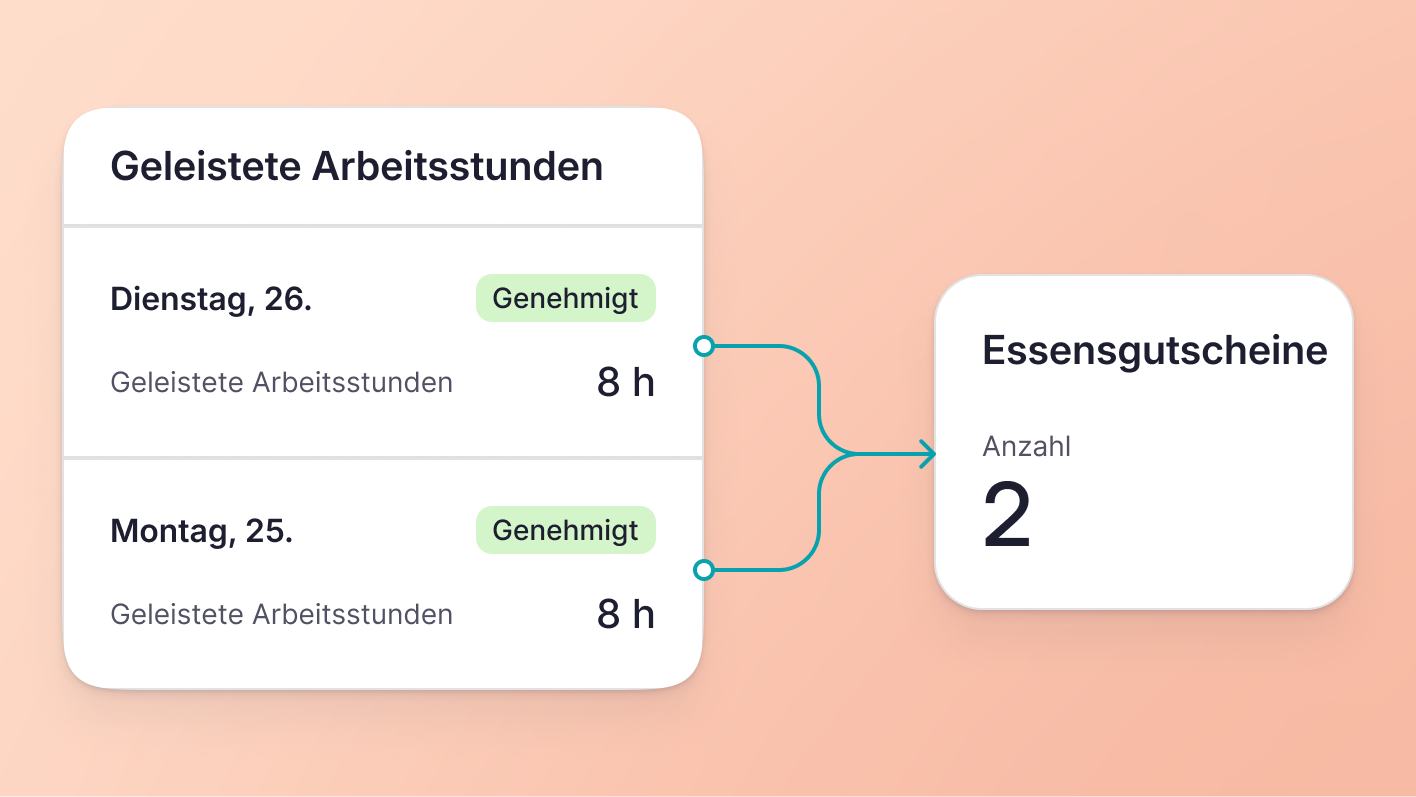 Legen Sie Regeln für Essensgutscheine auf der Grundlage von ganzen Tagen, halben Tagen oder Mindestarbeitsstunden fest, die der Vergütungspolitik Ihres Unternehmens entsprechen.