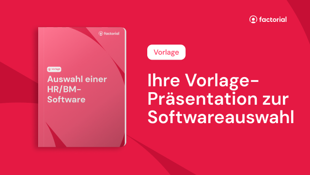 Laden Sie sich unsere Vorlage Präsentation für die Auswahl einer HR/BM-Software herunter und präsentieren Sie in Ihrem Unternehmen die Vorteile und Nachteile verschiedener Anbieter.