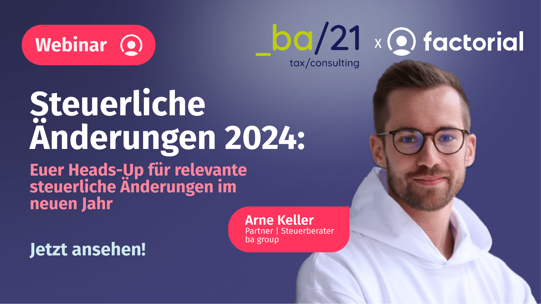 In diesem Webinar erfahren Sie mehr über die vielen tiefgreifende Veränderungen im Steuerrecht, die das Jahr 2024, in vielen Unternehmen und für viele Mitarbeitende, mit sich bringt.